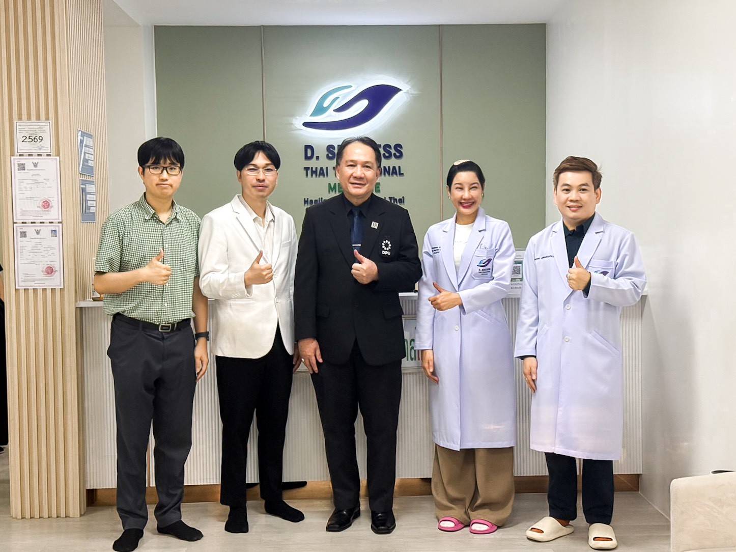 The visit aimed to exchange academic perspectives on clinical practice in Thai traditional medicine, professional capacity-building curricula, and innovative education management systems. The meeting was held at D Success Thai Traditional Medicine Clinic, Building 14, 1st Floor, Dhurakij Pundit University.